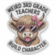 Third grade is where personalities grow, confidence builds, and things get a little weird — in the best way. This fun teacher design features an adorable Highland cow wearing heart-shaped sunglasses and a pink bow, paired with the phrase “Weird 3rd Grade Teachers Build Character.”
