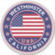 Westminster California, City of Westminster pegatina con bandera de los Estados Unidos, en forma redondeada