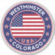 Westminster Colorado, Ciudad de Westminster pegatina con bandera de los Estados Unidos, en forma redondeada
