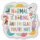 Celebrate creativity and individuality with this inspiring and colorful design: "Normal is boring, and I'm glad you're not." The quote is playfully decorated with whimsical elements like crowns, flowers, paintbrushes, and telescopes, set against a bright, abstract background. Perfect for artists, teachers, students, and anyone who appreciates imaginative and cheerful design.