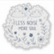 This hand-drawn illustration blends poetic lettering with delicate botanical elements to express a calm, soulful message. The phrase “LESS NOISE MORE SOUL” is surrounded by whimsical flowers, soft clouds, and tiny star accents, all rendered in cool blue tones with an organic, sketch-like style. The circular composition and imperfect lines create a cozy, contemplative mood, making this artwork ideal for lovers of mindful quotes, artistic expression, and gentle visual storytelling.