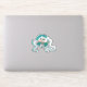 Capture the charm of the legendary mage with this adorable illustration of Frieren. Featuring a stylized, quirky expression that fans know and love, this artwork highlights her iconic white twin-tails, emerald green eyes, and gold accessories against a vibrant teal backdrop.