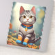 Descubra el encanto de este encantador amigo felino con nuestro Gato Woodland America Shorthair. Con un cautivador gato a rayas adornado con calcetines azules y naranjas brillantes y un collar vibrante con un emblema dorado, esta obra irradia una atmósfera alegre y serena. Perfecto para los amantes del gato y del arte por igual, esta pieza aporta un toque de brillo y calidez a cualquier espacio