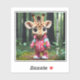 Conozca a nuestro adorable bebé de la jirafa, vestido con una ropa vibrante y bellamente estampada, con una encantadora bolsita esparcida sobre su espalda. Este encantador diseño, situado en el exuberante entorno de un bosque caprichoso, capta el espíritu de la curiosidad y la aventura. Perfecto para añadir un toque de alegría a cualquier espacio. "Imagen original generada por Meta AI. La IA generó obras de arte. Con licencia CC BY-SA 4.0.