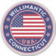 Willimantic Connecticut, Ciudad de Willimantic pegatina con bandera de los Estados Unidos, forma redondeada
