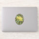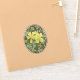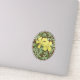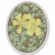 Este pegatina de forma ovalada presenta un ilustracion de hojas de acedera de madera y flores. Dos tonos verdes para las hojas se complementan con una línea marrón. El estilo de un bloque de madera le da a esta obra una calidad única y hecha a mano. Este pegatina es perfecto cuando quiera llevar un toque rústico a su casa. Disponible en flores violetas o amarillas. De la obra original de Carolyn A Pappas.
