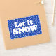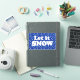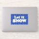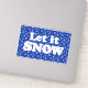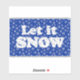Pegatina en "Let it SNOW", arte con motivos de nieve blanca en blanco sobre fondo disperso de copo de nieve sobre azul profundo