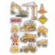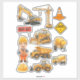 Start building fun memories with this heavy-duty set of construction-themed custom-cut vinyl stickers! This exciting collection features bold, yellow illustrations of essential worksite items: an excavator, a tall crane, a dump truck, cement mixers, and a bulldozer. The set also includes graphics of a worker, a hard hat, a traffic cone, and safety signs, making it perfect for little builders and truck enthusiasts.