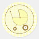 Un pegatina con un coche de bebé amarillo claro dentro de un marco en forma de círculo. Fondo de gingham amarillo. Busque elementos coincidentes, como invitaciones en la sección "Baby Shop" de The Pink Schoolhouse Store.