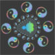Símbolos Yin y yang alrededor de un conjunto de Mandelbrot fractal