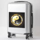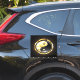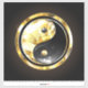 Joyería, oro y símbolo yin yang negro sobre fondo negro. Oro yin yang.