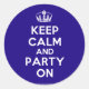 Basado en el original Mantener la calma y ... Este poster de color crema y azul Mantener la calma y Fiesta En Pegatina presenta una fuente diseñada por un personalizado que coincide estrechamente con la original.
