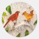 Aves rojas. Aves cardinales machos (rojos) y hembras (naranjas) sentados en el roble de la vida. Cantando amor. Pintura acrílica de Zina Stromberg.
