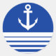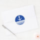 Pegatinas azul náutico con ancla de barco. Selladores de sobre azul marino y blanco para fiestas de playa o velero. Color del fondo del personalizable.