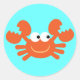 Pegatinas de niños azules con un lindo cangrejo personalizado naranja sonriente. El color de fondo es el personalizable: se pueden elegir entre montones de colores. Por favor visite mi tienda Molly Sky Designs para el paisaje español y fotografía animal y montones de ilustraciones divertidos, lindos y retro. Una amplia gama de productos disponibles: tazas, tazas de viaje, cadenas de claves, zapatillas, estampillas, camisetas, corbatas, patinetas, imanes, tarjetas de felicitación, postales, almohadillas de ratón, delantales, corbatas, bolsas de perro, botones/insignias, pegatinas, gorras, productos relacionados con el boda, ropa para niños y bebés, ornamentos colgantes, tirantes y broches; posters y carpetas.