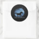 pegatinas del solsticio de invierno de bonito con un caballo corriendo y una gigantesca luna con las palabras Bendiciones del Solsticio de invierno. Negro dramático con una gran luna azul.