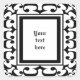 Estos elegantes y decorativos pegatinas en blanco y negro presentan un adorno de curvas abstractas que rodea las plazas centrales. Agrega tu propio texto o elimina lo que hay ahí. Cambie el color de fondo haciendo clic en el Personalizar It, a continuación en Editar y, a continuación, en Fondo.