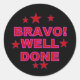 Pegatinas recompensas con fondo negro, texto rosado caliente dice "¡Bravo! ¡Bien hecho!