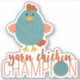 ¡¡¡Luchaste contra el pollo de hilo... y ganaste!!! Celebra con este lindo diseño de un pollo al hilo y las palabras que te declaran campeón de pollo al hilo. Disponible en rojo/naranja, verde/marrón, verde azulado/óxido y azul/morado. Productos a juego disponibles.