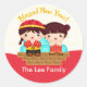 Pegatinas del CNY en rojo y oro con niño y chica.