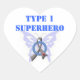 Muestra este pegatina en forma de corazón que muestra tu apoyo a tu "Superhéroe tipo 1". ¡Ideal para el coche, los aglutinantes, los fundas de transporte médico o los carteros!
