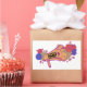 Nuestro sencillo logotipo de megáfono en una hoja de pegatina.