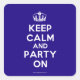 Basado en el original Keep Calm y ... poster este crema y azul Mantener la calma y Fiesta en Pegatinas (cuadrado) presenta un tipo de letra diseñado por un personalizado que coincide con el original de cerca.