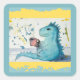 Pegatinas cuadrados de un Dinosaurio que bebe café