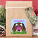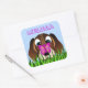 Beagle Puppy Dog y Mariposa © Sunny Mars Designs. Estos adorables pegatinas redondos personalizados presentan un ilustracion vectorial personalizado de un adorable cachorro de beagle marrón con una mariposa rosa bonito sentada en su nariz mientras él lo mira fijamente, sentado sobre césped verde con el cielo azul en el fondo. Pegatina perfecto para los niños. Personalízalo agregándole tu propio nombre o texto.