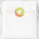 Este diseño es un enchufe de alimentación. El enchufe de alimentación es blanco sobre una base verde y naranja. Este diseño de enchufe de potencia se ve muy bien en este Pegatina