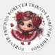 Hermosa pegatina de una Chica educada con un vestido fiesta rojo oscuro y bonito con abundancia de flores en el pelo. Cabello de flujo oscuro. Bonitas botas rojas. Hermoso pájaro de la señorita volando hacia ella. Ideal para todos tus proyectos estacionarios, de artesanía o escolares. Ponte las cajas de almuerzo o botellas de agua. pegatinas de la Amistad bonito, amigos eternos imprimieron en círculo alrededor del exterior de estos pegatinas.