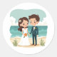 Incluye 20 pegatinas pequeños en una hoja. Adorables pegatinas personalizados de una novia y un novio se toman de la mano en una playa con fondo oceánico, perfecta para una decoración de celebración boda.