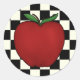 Pegatinas de manzanas. Compra estos pegatinas de personalizable con un dulce diseño de manzana roja y añade un toque de imaginación a tu día! Este diseño anticuado de una linda manzana roja contra un fondo de tablero de ajedrez blanco y negro está disponible en pegatinas divertidos que te encantarán. Ideal para favores de partido, recompensas o diversión, estos lindos pegatinas de manzanas seguro que te harán sonreír! El lindo diseño de manzanas en pegatinas divertidos, cómpralo ahora y añade un poco de brillo a tu día!