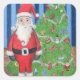 Este retrato de Santa es un ilustracion de lápiz de color original de Angela Hoard-Dunn. Estos pegatinas muestran un lindo Papá Noel frente a un árbol de Navidad que está decorado con muchos adornos divertidos y únicos. Santa está sonriendo tímidamente y parece que le están tomando la foto.