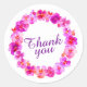 Moderna y abstracta manantial de acuarela de color rosa brillante corona morada gracias por venir o favorecer a bodas o pegatinas en ocasiones. Parte de los brillantes paneles rosados acuarela color corona boda de arte estático. © Pintura y diseño de las acuarelas originales de Sarah Trett. www.sarahtrett.com para www.mylittleedenweddings.com