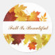 Pegatina redondo mostrado con hojas de otoño de bonito impreso. Personalizar este artículo o compra como está. com.