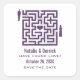 Pegatinas de Aviso de Laberinto de Amor divertidas y originales en morado con un laberinto que tiene un corazón en el medio y una novia y un novio a cada lado, esperando encontrar el uno al otro y el amor. Este diseño dulce es una elección encantadora para anunciar tu próxima boda. Fácil de personalizar, simplemente rellena los detalles de tu boda en los campos de texto proporcionados. Haz clic en el botón "Personalízalo" para encontrar opciones adicionales de personalización.