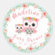 Boho Owl Pegatinas de Baby Shower. Pegatinas de ducha de bebé personalizados con flores sobre un adorable fondo de polka pastel. Estos lindos pegatinas pueden ser fácilmente personalizados con cualquier nombre y fecha que quieras. ¡Simplemente escribe el nombre y la fecha y estás bien!
