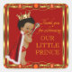 Pegatinas de la ducha de bebé de príncipe rojo y dorado con un lindo pelo afro sobre un hermoso fondo rojo y dorado de joyas. Estos pegatinas de ducha para bebés de príncipe rojo y dorado se personalizan fácilmente para tu evento simplemente añadiendo tus detalles.