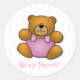 Pegatinas de sobres cortos con obras de arte personalizado de un oso de peluche con vestíbulos rosas. Baby Shower, un fondo rosado y blanco de polka punto y lectura de texto rosado, le da un toque final agradable a cualquier invitación a una ducha de bebé o invitación de bebé. Personalice el texto para que se ajuste a sus necesidades.