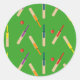 Cricket Bats en una variedad de colores con bolas rojas contra un fondo verde