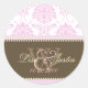 Pegatinas de boda con monograma en damasco rosa