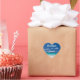 Pegatinas de bodas de playa azul corazón con texto de personalizable