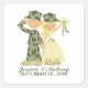 Estos stickers de boda completamente de personalizable presentan el ilustracion caprichoso de un soldado y su novia. Diseño JW