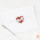 Pegatina mostrado en forma de corazón con un corazón boda romántico con rosas y palomas rojas. Personalizar este artículo o compra tal cual.