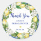 Diseñado para coordinar con la colección Lemon de Jenny, esta pegatina para despedida de soltera presenta un limón amarillo y una corona floral blanca. Hay un toque de baldosas azules alrededor del borde de la pegatina redonda. El nombre de la novia y la despedida de soltera siguen escritos en una fuente de letra moderna y trendy. La fecha completa el texto. Un pequeño corazón amarillo añade un toque de romance. Todo el texto es editable.
