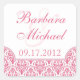 ¡Este pegatina cuadrado coincide perfectamente con nuestro juego de bodas de damasco rosado! Es de color rosa, a la sombra de un bonito clásico, adamascado. Esto podría ser usado como sello para sobres, para favores de fiesta, etiquetas de regalo de agradecimiento, o una gama de otros usos relacionados con festividades de bodas. Infinitos usos para este elegante diseño. dam001