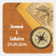 Adventure Wedding Stickers con una antigua brújula, un esqueleto de dinosaurio estegosaurio sobre un pedazo de papel y un fondo de arte digital con aspecto de madera. Estos geniales stickers de bodas son perfectos para una aventura arqueológica o para un boda con temática de museo. Fácil de personalizar, simplemente añada los detalles de su boda. Haga clic en "Personalizar" para encontrar más opciones de personalización.