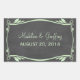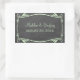Elegante y de moda Flourish Chalkboard Wedding Stickers con un aspecto de pizarra y un elegante borde de estilo Art Déco con flores y hojas en verde menta. Fácil de personalizar, simplemente añada los detalles de su boda. Haga clic en "Personalizar" para encontrar más opciones de personalización.
