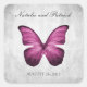 Pegatina Boda elegante y sencillo con mariposa magenta sobre un fondo gris. Este diseño es una elección única para un boda moderno. Fácil de personalizar con los detalles de su boda. Haga clic en "Personalizar" para encontrar más opciones de personalización.